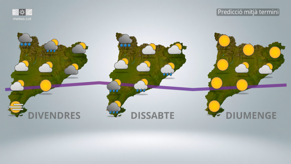 Divendres, doncs, començarà encara amb el vent com a protagonista a l’alta muntanya i a les muntanyes del sud. Això sí, els núvols marxaran en general i tindrem un dia de treva per gaudir del paisatge de tardor, però ara ja sí ben emblanquinat al Pirineu i Prepirineu per sobre dels 2.000-2.300 m. Cal dir que les boires poden resistir-se a marxar a l’alta muntanya del Pirineu axial, des de l’Aran fins a l’Alt Ter-Freser, encara amb alguna nevada residual.