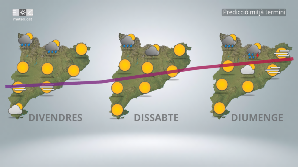 De cara al cap de setmana, aquesta situació de creixement de nuvolades anirà a més i caldrà tenir-ho en compte a l’hora de planificar la nostra activitat, especialment diumenge.
